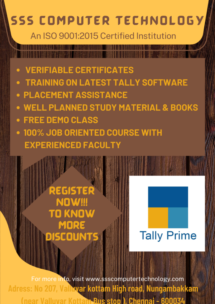 TALLY PRIME COURSE : ✅Reg fee :100 ✅COURSE FEE:6000 🌟IF SPOT REGISTRATION ,YOU’LL GET EXCLUSIVE OFFER OF DISCOUNT RS. 500 AND FREE BOOK PROVIDED(WORTH RS.500) Read More »